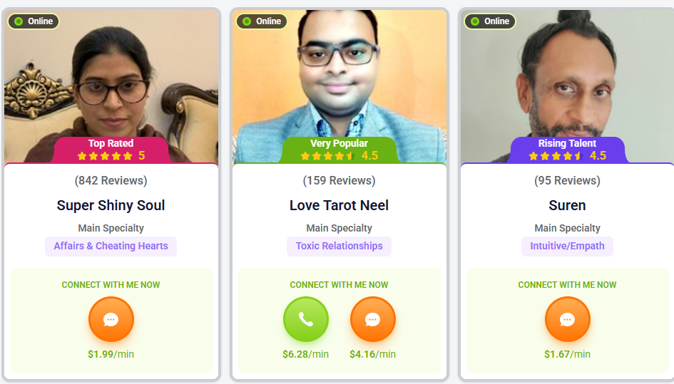 - Skilled Intuitive Advisors: Experienced in tarot, energy reading, and life path interpretation